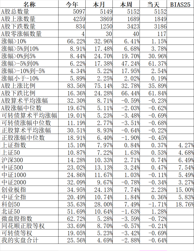 1849只个股上涨,3186只个股下跌,涨幅中位数-0.62%。